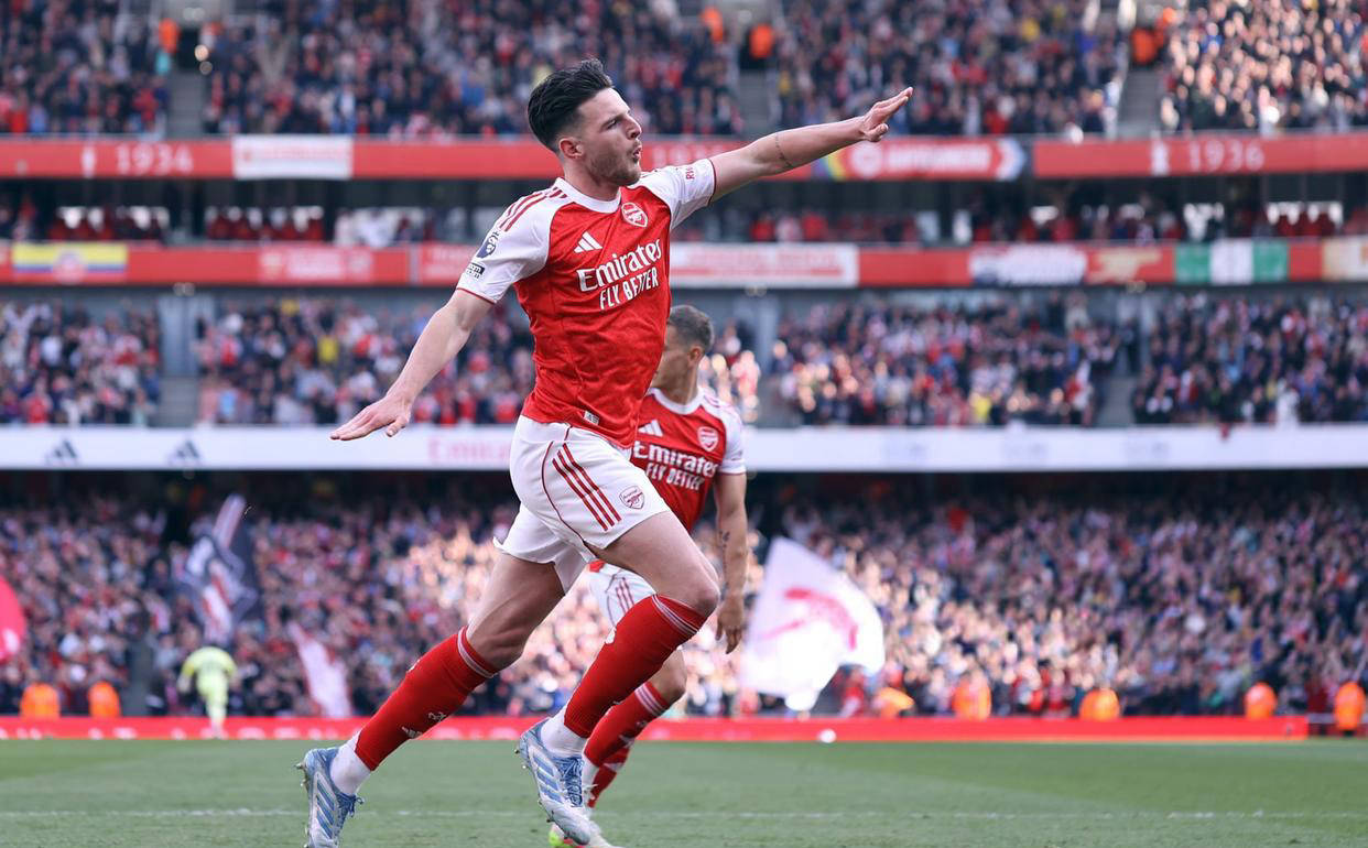 比赛进入第24分钟时出现争议判罚,本-怀特禁区内被放倒,但裁判未判点球,双方在上半场未分胜负。下半场易边再战,阿森纳调整战术,用卡拉菲奥里换下萨利巴,场面逐渐向他们偏移。第55分钟,竟然通过一次快节奏反击取得领先!赖斯迎球扫射破门,帮助阿森纳打破僵局,这也是他本赛季的代表作之一。